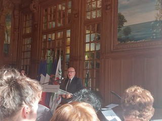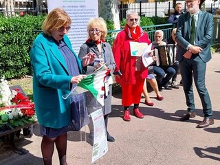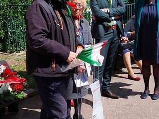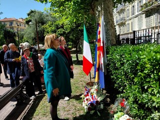 Sono intervenuti il Console Generale Emilio Lolli, la Presidente dell'Anpi Costa Azzurra Laura Albanese e la Vice Presidente Patrizia Gallo.