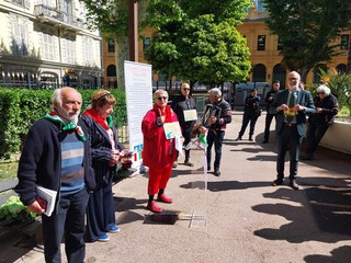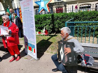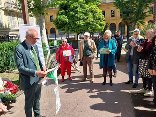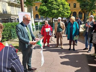 L’appuntamento era fissato ai Giardini Wilson di Nizza davanti alle “Stella” che ricorda Sandro Pertini, il Presidente della Repubblica partigiano.