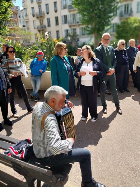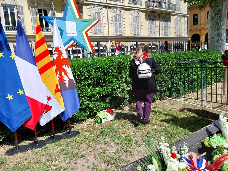 L’appuntamento era fissato ai Giardini Wilson di Nizza davanti alle “Stella” che ricorda Sandro Pertini, il Presidente della Repubblica partigiano.