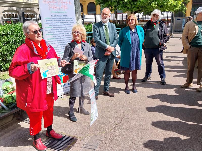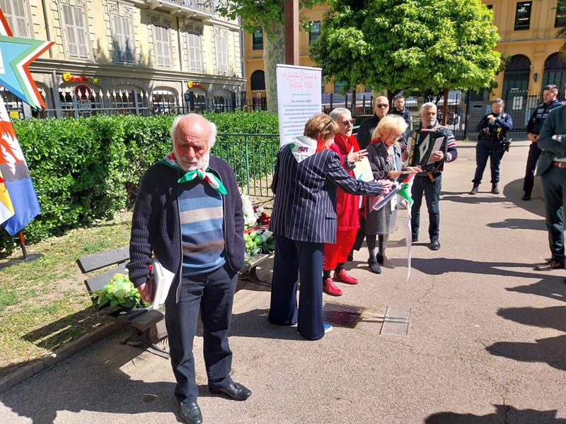 Sono intervenuti il Console Generale Emilio Lolli, la Presidente dell'Anpi Costa Azzurra Laura Albanese e la Vice Presidente Patrizia Gallo.