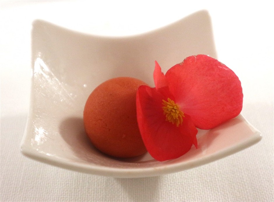 E dopo la piacevole presentazione il pubblico presente ha potuto degustare un gradevole e sorprendente Sorbetto Fior di Begonia preparato dai pasticceri del ristorante.