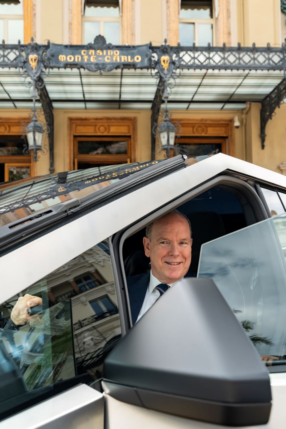 Il Principe Alberto II sembrava perfettamente a suo agio mentre manovrava il veicolo dal design iconico da Place du Casino verso Port Hercule, accompagnato da Mathieu Lenglin, Direttore di Tesla France.