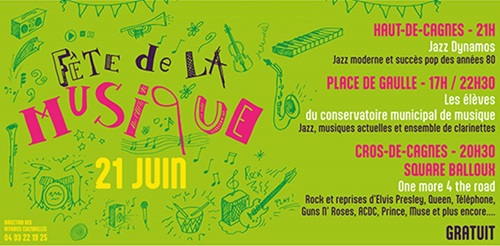 Feste della Musica si svolgono quasi ovunque venerdì 21 giugno 2024, una di estremo interesse è in programma ad Haut-de-Cagnes, in Place de Gaulle ed a Cros-de-Cagnes.