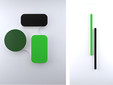 Type B (Vert) - Deux Rectangles & Un Cercle, 165 x 146 x 12 cm, Plaques d’Aluminum peintes -- Type C (Vert) - Deux Lignes, 220 x 24 x 10 cm, Plaques d’Aluminum peintes