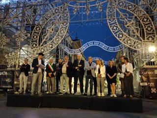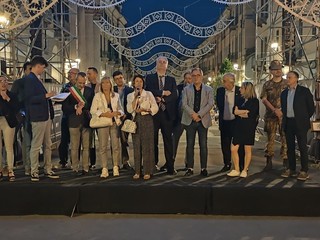 A seguito degli interventi istituzionali è stata effettuata la prima accensione in musica, davanti a una piazza Galimberti gremita.