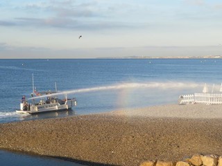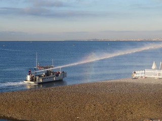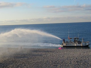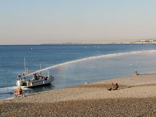 Un gruppo di dipendenti comunali inizia un lungo e meticoloso lavoro di raccolta dei rifiuti abbandonati durante la notte, di svuotamento dei cestini e di sostituzione dei sacchetti. Intanto, dal mare, giunge un forte getto “sparato” da un’apposita imbarcazione, unica nel suo genere in Francia, assicurano i responsabili.