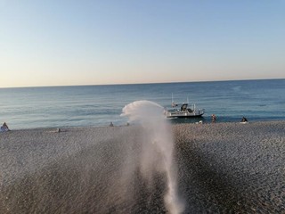 Con la forza della pressione lava a fondo i ciottoli e mette le spiagge nella condizione ideale per accogliere i bagnanti che, allo spuntar del sole, già sono parecchi sulla riva per concedersi il primo bagno che, a quell’ora, avviene in acque particolarmente limpide che consentono di godere della vista dello splendido fondale.