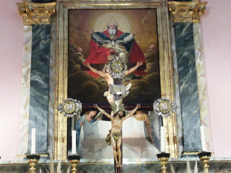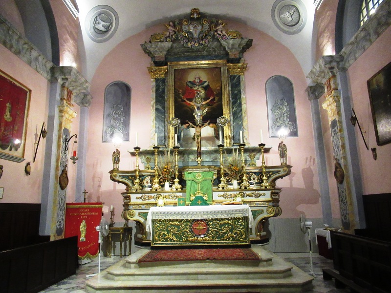 L’altare maggiore è decorato con una Santa Trinità realizzata da Paul Emile Barberi.