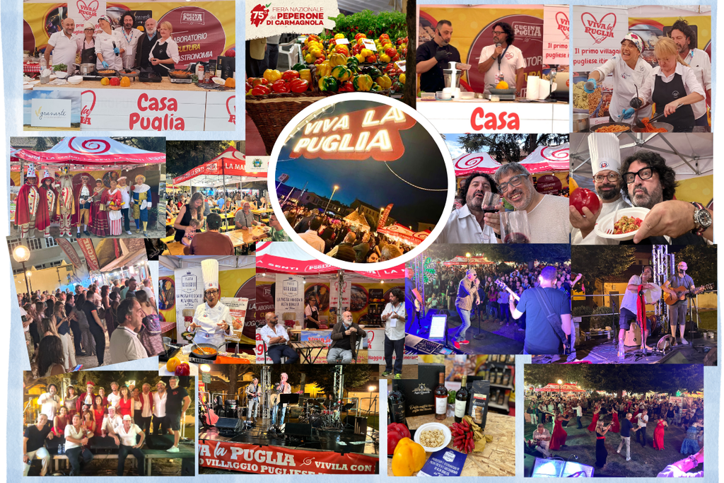 Si è conclusa con grande successo la 75a edizione della Fiera Nazionale del Peperone di Carmagnola, un’importante kermesse cultural-gastronomica che ha animato per 10 giorni il centro storico di Carmagnola con showcooking, degustazioni, musica e intrattenimento per tutte le età. “Siamo molto soddisfatti che Viva la Puglia, per il secondo anno consecutivo alla Fiera Nazionale del Peperone, abbia riscosso un ulteriore gradimento di pubblico e presenze,” spiega Marco Vacca, ideatore e proprietario di Cucina di Puglia. “Quest’anno il nostro format di cucina e street food è stato arricchito da eventi culturali, musicali folkloristici ed enogastronomici. In particolare, la novità di ‘Casa Puglia’ è stata molto apprezzata: un vero viaggio nei sapori che inizia dalla Daunia e il Gargano, passa attraverso la Murgia e la Terra di Bari, per concludersi nella Valle d’Itria e nel Grande Salento.”