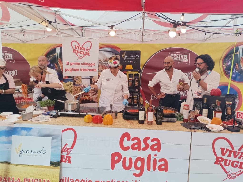 Lo spazio “Casa Puglia”, collocato all’interno del Villaggio Viva la Puglia nei Giardini Unità d’Italia, ha affascinato i visitatori con le sue lucine e l’atmosfera verdeggiante, richiamando alla mente il calore e la bellezza di un paese del sud Italia. Qui, oltre al cibo, è stata posta grande attenzione alla presentazione delle tradizioni locali, offrendo talk show, workshop, cooking show e degustazioni che hanno permesso ai visitatori di riscoprire le radici pugliesi. Casa Puglia è stata curata artisticamente da Marco Fedele, giornalista ed esperto di comunicazione enogastronomica, nonché Pugliese DOC.