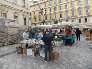 A centinaia, usati, sono in vendita al mercatino che si sviluppa, il sabato, sulla Place du Palais de Justice, nel cuore storico di Nizza.