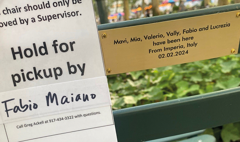 Il mio legame con New York è iniziato nel 2007, quando ho trascorso più di un mese nella città per completare la mia tesi di laurea. È stata un’esperienza intensa e formativa, e da quel momento, ogni volta che ne ho avuto l’opportunità, sono tornato. Credo di aver visitato New York circa dieci volte, da allora. C’è qualcosa di magnetico in questa città: la gente, l’architettura, e il “sogno americano” che rappresenta. Sono cresciuto negli anni ’80 con il mito dei film americani, e New York è l’emblema di tutto questo. Durante quest’ultimo viaggio, abbiamo portato Mavi a Bryant Park a pattinare. C’era un’atmosfera magica che non dimenticheremo facilmente, è stata un’esperienza davvero molto emozionante. Qui il comune offre la possibilità di “adottare” una panchina, il cui ricavato va in beneficenza e abbiamo deciso di far mettere una targhetta con i nostri nomi e la data del soggiorno. È un piccolo gesto, ma ci ha reso felici contribuire ad una buona causa e, contemporaneamente, sapere che un pezzo di noi rimarrà lì per almeno due anni.