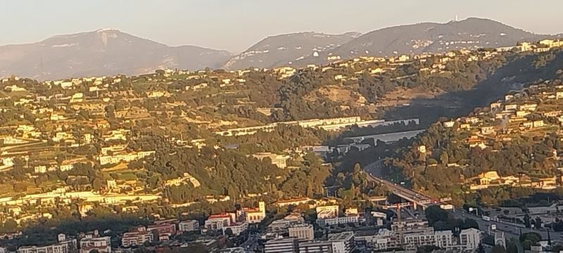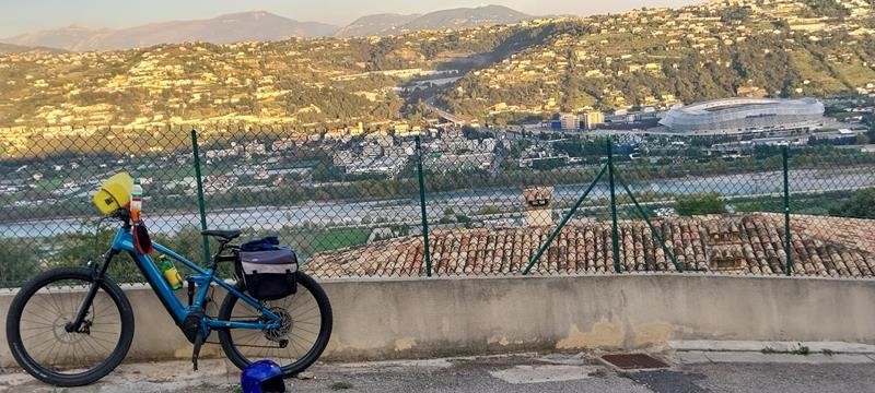 Per poi proseguire sulla strada di La Gaude da dove si scorge lo stadio di Nizza e il villaggio di Saint Isidore.