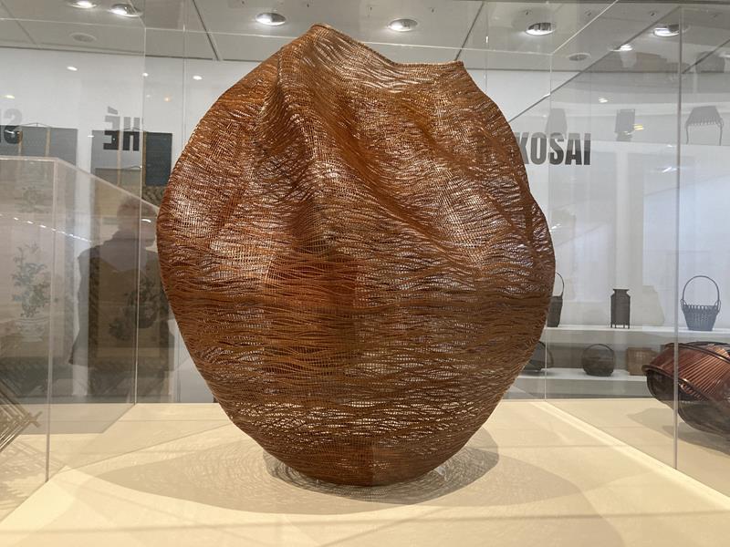 Più avanti si scopre l’evoluzione del bambù: dai panieri quotidiani all’oggetto d’arte contemporanea.