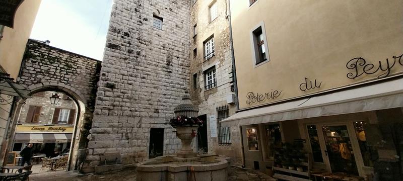 Attraverso la Porte du Peyra, la porta principale risalente al 15esimo secolo, si riesce ad ammirare la Fontaine du Peyra, costruita nel 1822 per sostituire quella del 1578. La sua pura acqua minerale viene dal fiume Foux, poco sopra all’abitato. Su una vecchia targa di marmo sono elencati i diversi minerali presenti e le loro quantità.