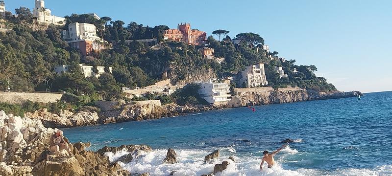Ve ne è abbastanza per riconoscere alcune delle caratteristiche della città: il cielo prima azzurro, il mare “invernale” calmo con le spiagge che non sono vuote, coraggiosi che sfidano le onde, il porto, il Mont Boron, La Reserve e Lazaret.