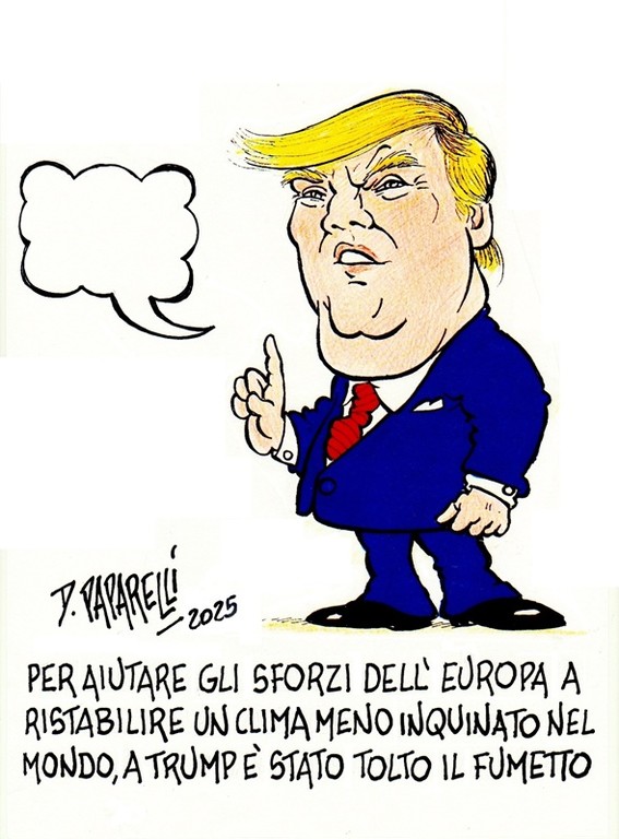 Il nostro collaboratore Danilo Paparelli, noto vignettista che ha firmato anche alcuni carri del Carnevale di Nizza, ha dedicato al neo Presidente degli USA Donald Trump, che ha annunciato la sua volontà di staccarsi dal programma mondiale contro l'inquinamento, questa simpatica vignetta.