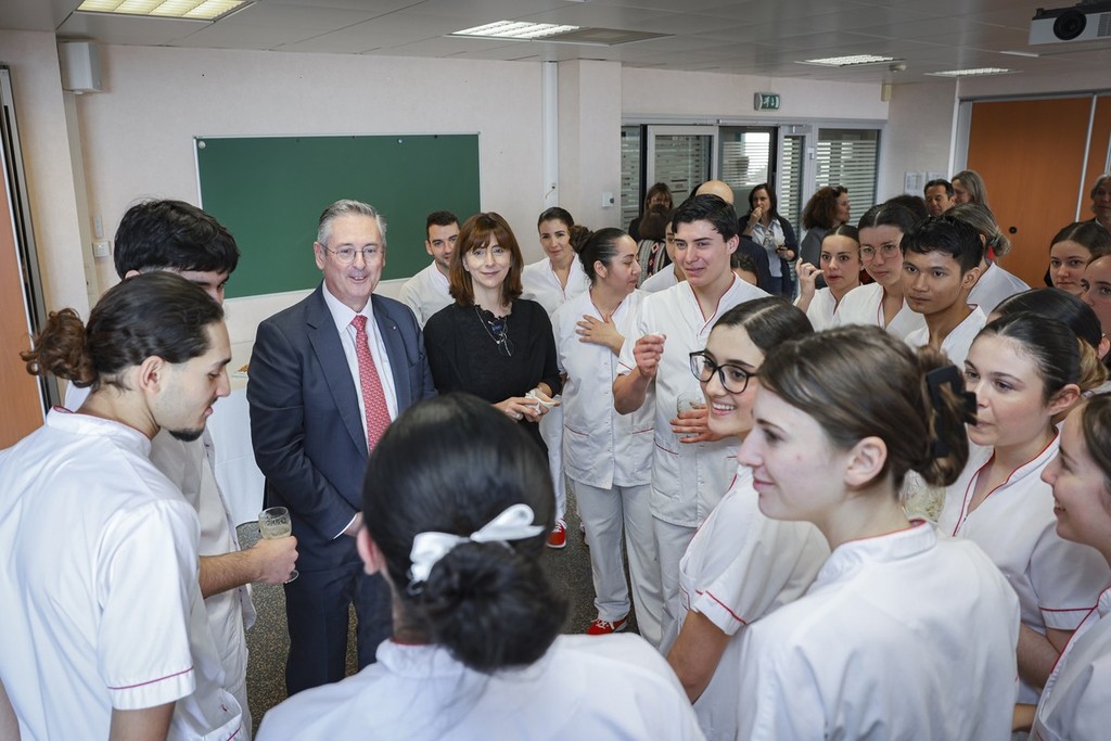 Giovedì scorso, gli studenti di infermieristica della classe 2024-2027 si sono incontrati con Christophe ROBINO, Consigliere di Governo-Ministro degli Affari Sociali e della Salute, durante un ricevimento dato all'Istituto di Formazione in Cure Infermieristiche di Monaco (IFSI).