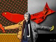 Titolo “camouflage ethnique”, vicino un “Omaggio a Magritte”, un disegno grafico con l’artista stesso che indossa un abito che sembra fatto da uno stilista di moda.