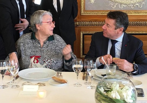 Sapevo solo che Georgette non era vicino a me. Quando mi sono seduta saluto il mio vicino di destra e guardo il nome di quello di sinistra. C'é scritto Christian Estrosi: il Sindaco al mio fianco, anzi io al suo e adesso?