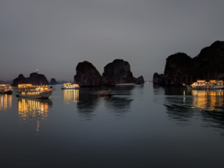 Il viaggio si è concluso con una crociera nella baia di Ha Long, tra acque placide e formazioni rocciose spettacolari, patrimonio dell’UNESCO. Abbiamo visitato grotte nascoste e fatto kayak. Gli isolotti si succedevano come sculture naturali, ognuno con la propria forma: alcuni ricordavano teste d’animali, altri colline verdi. Ogni curva della baia nascondeva una nuova meraviglia. La sera, la piccola nave ha gettato l’ancora in una baia riparata. Abbiamo cenato con pesce fresco, verdure, riso profumato. Nessuna connessione internet, solo il fruscio dell’acqua contro lo scafo e il riflesso delle luci sulle onde. Abbiamo dormito cullati dal rollio lento della barca. Nessun rumore, nessun faro. Solo la sensazione di essere lontani da tutto, circondati da montagne di pietra in mezzo al mare. Anche qui, però, il turismo di massa ha cominciato a farsi sentire. L’esperienza immersiva, a tratti, mi è sembrata ben confezionata.