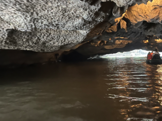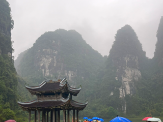 Il giorno seguente abbiamo raggiunto Trang An. Nonostante la vicinanza geografica, il contrasto è stato immediato. Tam Coc ci aveva accolti con un’atmosfera rurale e quasi intima; Trang An ci ha investiti con la forza di una macchina turistica ben oliata. Appena entrati nell’area protetta, ci siamo trovati davanti a un enorme parcheggio pieno di pullman e file perfettamente ordinate di barche in attesa. Il tragitto è durato circa due ore e mezza. Siamo passati attraverso una serie di grotte lunghe e strette, ognuna con un nome evocativo: Sang Cave, Toi Cave, Nau Ruou Cave. L’acqua era immobile come uno specchio e rifletteva le stalattiti e le pareti di pietra in un gioco ipnotico di luci e ombre. In alcuni punti, la roccia ci ha sfiorato la testa! Sulla superficie del fiume, il traffico di barche era continuo. Alcuni tratti del percorso somigliavano più a una tangenziale fluviale, eppure la bellezza del paesaggio era fuori discussione. I templi nascosti sulle rive, raggiungibili solo via fiume, aggiungevano un tocco di mistero e spiritualità. Abbiamo attraccato per visitarne uno: un piccolo santuario immerso nella vegetazione, dove il profumo dell’incenso si mescolava all’umidità del muschio. Uno spettacolo, confezionato in maniera perfetta, per i molti visitatori!