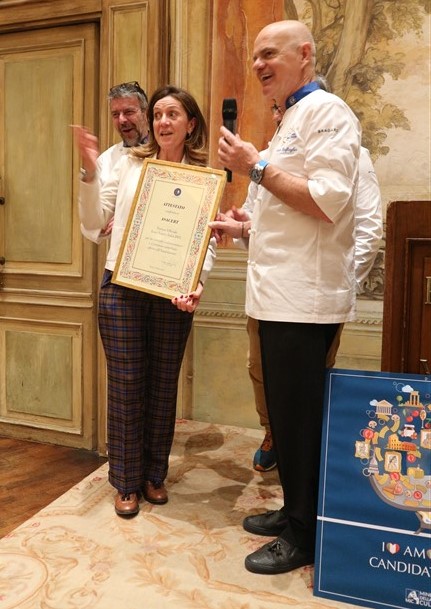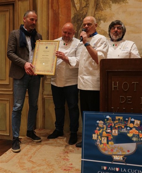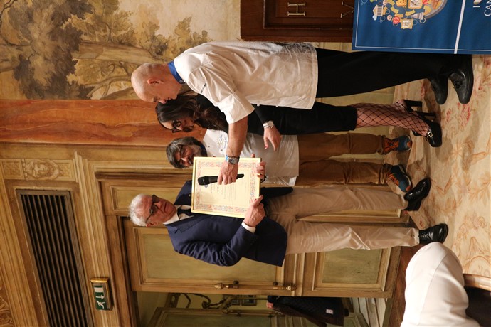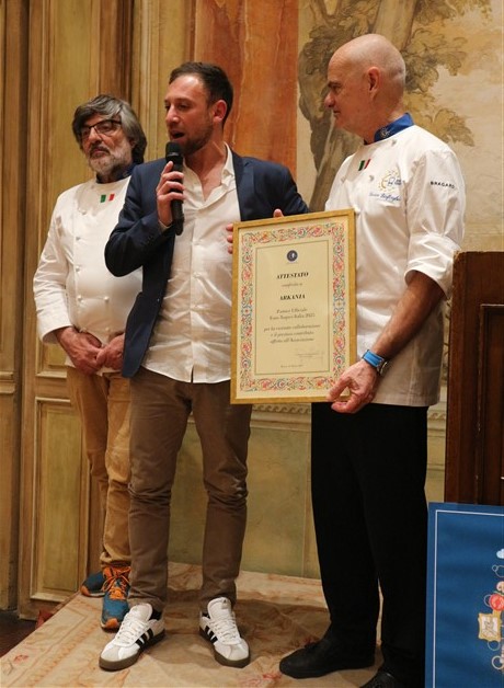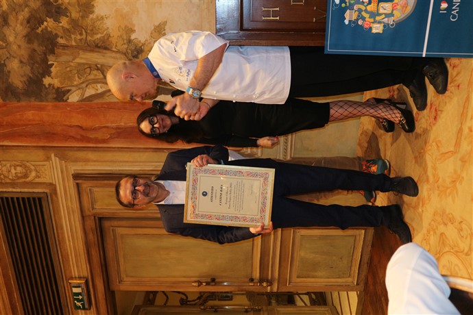 Alla fine della serata, Euro Toques ha offerto un contributo economico alla cooperativa sociale “La Fabbrica di Olinda” (https://www.olinda.org/), poiché tra gli obiettivi di Euro Toques ci sono anche la solidarietà e il supporto alle iniziative sociali.