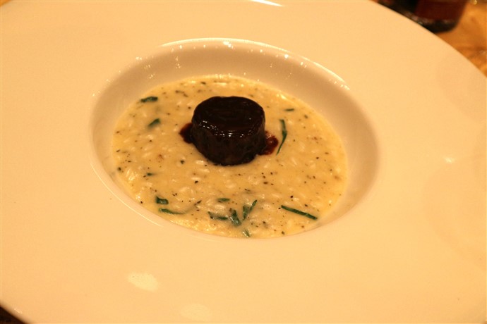 come primo piatto è stato servito un raffinato Riso Carnaroli Riserva San Massimo, arricchito da fresche erbe aromatiche, coda di bue e una saporita salsa al vino rosso, preparato con maestria dallo chef Giuseppe Mancino, a capo del prestigioso ristorante “Il Piccolo Principe”, Hotel Principe di Piemonte Viareggio (LU), insignito di due stelle Michelin. In abbinamento si è offerto un elegante Montessora Gavi di Gavi 2023 della Giustiniana.