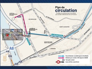 Agli automobilisti diretti verso Cannes e Aix-en-Provence si consiglia di percorrere la Voie Pierre Mathis e successivamente l’avenue Valéry Giscard d’Estaing per raggiungere l’autostrada.