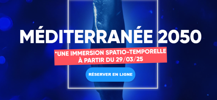 Imbarcati in un affascinante viaggio attraverso il tempo e lo spazio. La mostra si sviluppa attraverso quattro grandi spazi tematici, ognuno dei quali propone un'immersione singolare nelle molteplici sfaccettature del Mediterraneo, per esplorare le sfide di conservazione del Grande Blu e immaginare il suo futuro! Punto culminante del percorso: un'immersione di 16 minuti, nel 2050, a bordo di un sommergibile futuristico, nel cuore del santuario Pelagos. Siete catapultati in un Mediterraneo rigenerato, dove il 30% degli spazi marini sono protetti. Di fronte a voi, una proiezione monumentale immersiva di 310 m2 vi fa attraversare ecosistemi abbondanti, popolati da tartarughe caouane, balenottere, cernie, squali o delfini di Risso... grazie a una ricostruzione ultra realistica.