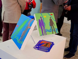 Durante il vernissage, a catturare l’attenzione di galleristi e artisti è stata soprattutto una scultura sottile in plexiglas blu, al cui centro viene proiettato un video dedicato al triathlon: un’opera che sintetizza perfettamente l’ibridazione tra media e il dinamismo dell’intera mostra.