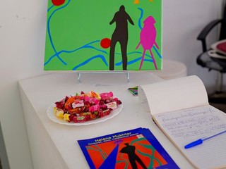 A unire tutte le opere, una palette vitaminica, un tratto grafico marcato e un’ironia brillante che si riflette nei titoli delle opere, come Conversazione con un gatto nero o Come persuadere un cane viola.