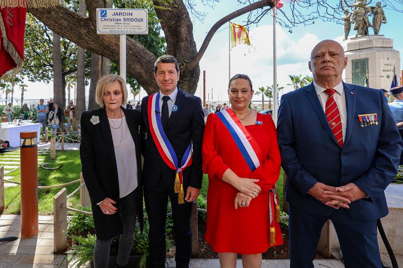 Durante la cerimonia, il sindaco David Lisnard ha ricordato il coraggio e l’impegno di Bridoux, che già nel 2015 era stato nominato Cittadino Onorario della città. "Christian Bridoux fu uno di quegli uomini straordinari che, a soli 17 anni, sfidarono il destino per liberare la Francia dal giogo nazista, ha dichiarato Lisnard. Intitolargli questo giardino è un atto di memoria e di gratitudine eterna".