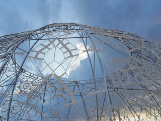 Una lunga frase in alluminio attraversa lo spazio urbano richiamando alla mente il legame ancestrale tra l’uomo e il mare, in un invito poetico all’immaginazione collettiva per un futuro più armonioso.