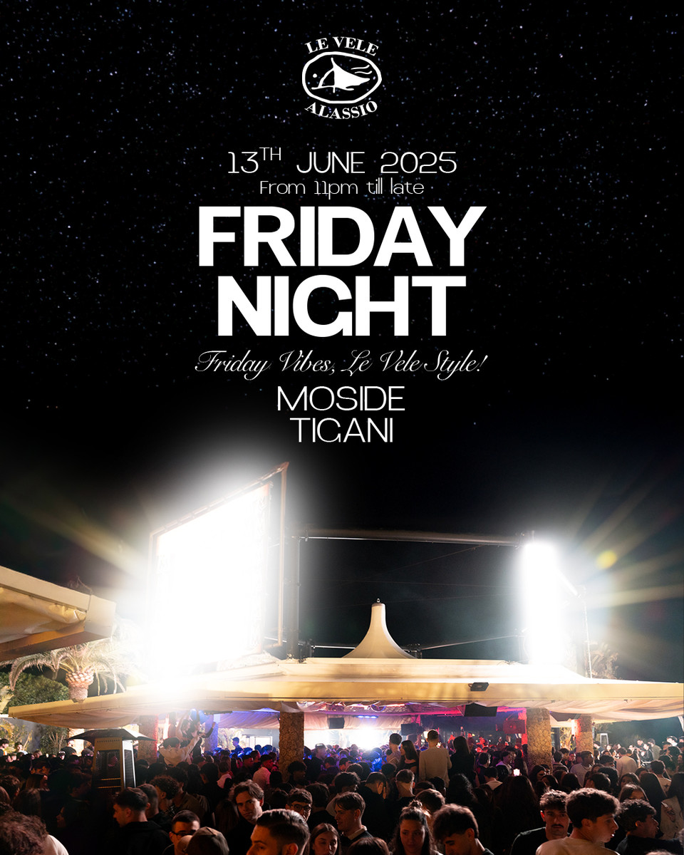 Al termine dell'evento di beneficenza, a partire dalle ore 23:00, si accenderanno le luci del consueto Friday Night firmato Le Vele Alassio, con Moside e il resident DJ Tigani in consolle, per una notte all'insegna della musica e del divertimento.