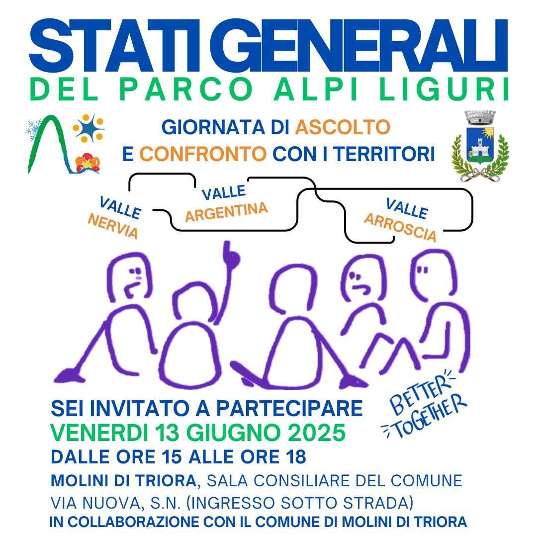 Venerdì 13 giugno il Parco Naturale Regionale delle Alpi Liguri incontra i territori delle Valli Argentina, Arroscia e Nervia per raccogliere, ascoltare e condividere dubbi e problematiche, proposte e iniziative.