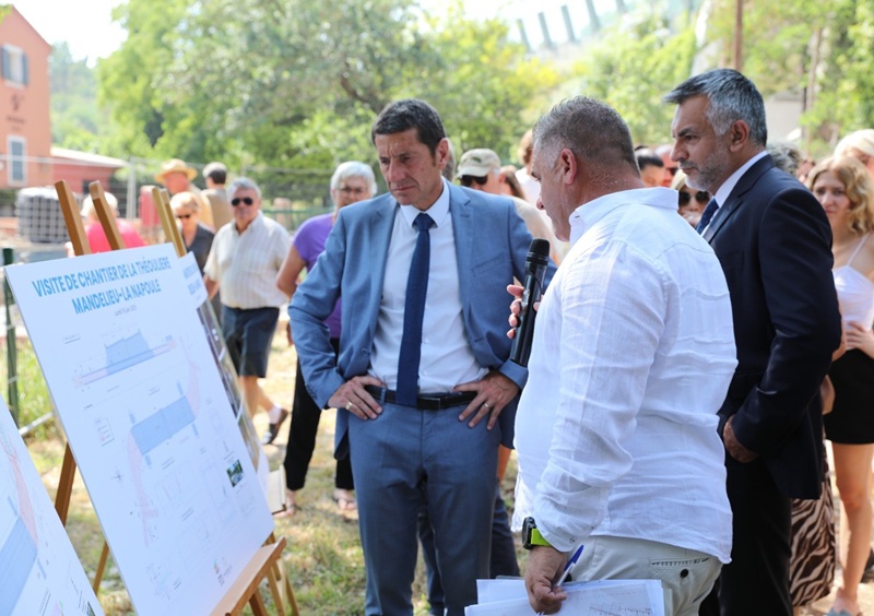 Il presidente dell’Agglomération e sindaco di Cannes, David Lisnard, insieme al primo vice-presidente dell’Agglomération e sindaco di Mandelieu-La Napoule, Sébastien Leroy, ha effettuato un sopralluogo sul cantiere.