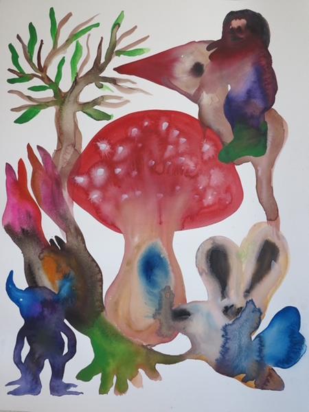 "Les rêveries de l’enfant Totem" invita il visitatore a entrare in una foresta mentale abitata da creature grottesche, demoniache, ironiche e pop.