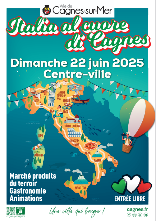 L’Italia in festa, nel cuore della Costa Azzurra. A Cagnes-sur-Mer, il profumo della focaccia calda e il suono delle canzoni italiane invaderanno le vie del centro domenica 22 giugno.