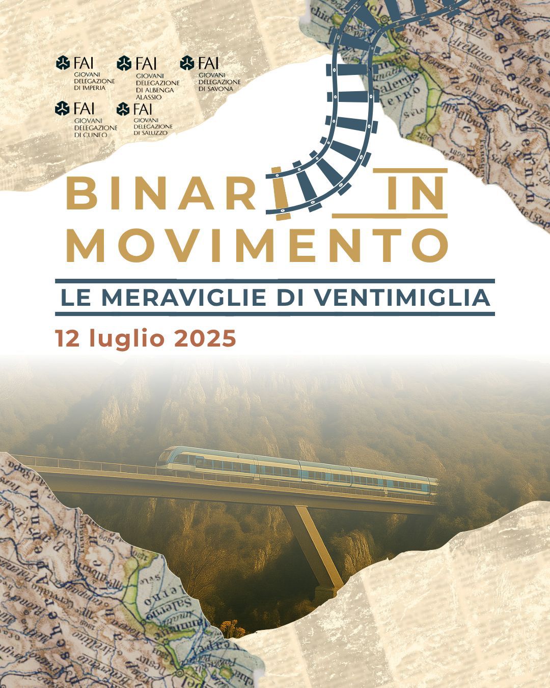 Sabato 12 luglio 2025 si terrà a Ventimiglia l’evento “Binari in Movimento 2025”, organizzato dalla Delegazione FAI di Imperia insieme ai Gruppi FAI Giovani di Savona, Albenga-Alassio, Cuneo e Saluzzo. L’iniziativa mira a valorizzare il patrimonio storico, culturale e naturale legato alla Ferrovia delle Meraviglie, un’opera di ingegneria ferroviaria che collega Piemonte e Liguria attraversando paesaggi di grande suggestione.
