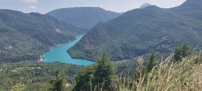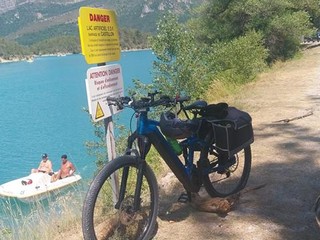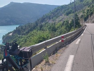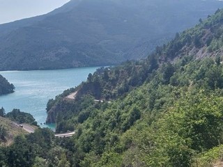 Innanzi tutto una prima sosta al villaggio di Peyroules, dove ha ricaricato la batteria della bicicletta, poi, transitando attraverso Castellane è giunto al primo lago della giornata, quello di Castillon.
