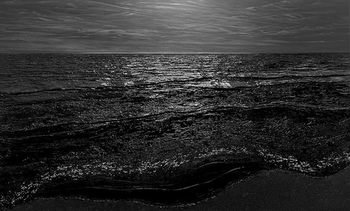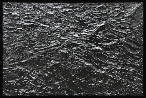 Cuore della mostra è The Crossing, serie di dipinti neri incisi che evocano le traversate in mare notturne, metafora potente tra luce e oscurità. Opere che, pur immerse nel buio, lasciano filtrare una luce interiore, simbolo di speranza e guarigione.