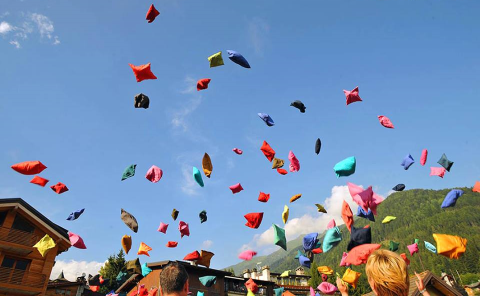Mercoledì 13 agosto alle ore 16 e in replica alle ore 18, dopo aver fatto tappa a Vernante, la Compagnia Azioni Fuori Posto presenta la performance di danza, Oltrepassare mentre alle ore 17 ritorna il Melarancio con la Battaglia dei Cuscini; centinaia di leggerissimi cuscini multicolori compaiono in scena e in una reazione a catena esplode la battaglia: accompagnati dalle scatenatissime musiche ska, gli spettatori si trovano coinvolti in una piccola follia collettiva, dove tutti combattono contro tutti, che coinvolge giovani, bambini, genitori e nonni. Questa pazza ed inoffensiva lotta a colpi di cuscino, prosegue fino allo sfinimento dei partecipanti. Ad un preciso segnale tutto si ferma e la battaglia si conclude in un soffio di piume. Prima di salutare il pubblico esausto, un grande telo colorato invita gli spettatori a sedersi: ben presto ci si trova su un cuscino gigante, pieno d’aria, su cui è possibile nuotare, rotolare, gattonare e ovviamente riposarsi dopo tanta fatica. Alle ore 21 ancora la Compagnia Hanami con Lusin.
