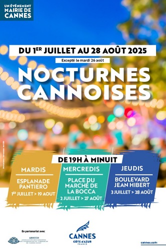 Il calendario prevede tre serate alla settimana, sempre dalle 19.00 a mezzanotte: il martedì sull’esplanade Pantiero (eccetto il 26 agosto), il mercoledì nella suggestiva piazza del mercato di La Bocca e il giovedì lungo il boulevard Jean Hibert, a pochi passi dal mare.