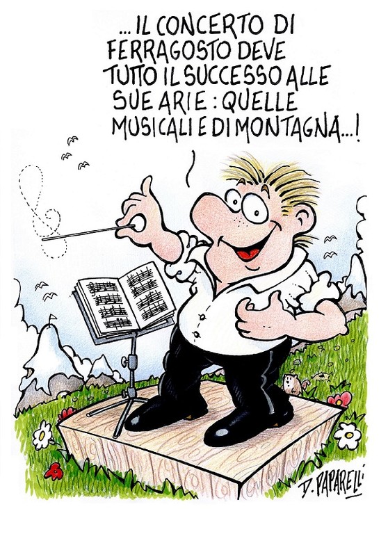 Il nostro collaboratore Danilo Paparelli, noto vignettista che ha firmato anche alcuni carri del Carnevale di Nizza, ha dedicato al concerto di ferragosto sul Mondolè a Prato Nevoso, che richiama turisti, anche d'oltralpe, grazie alla riapertura di tutti i collegamenti transfrontalieri, questa simpatica vignetta.
