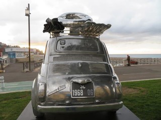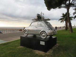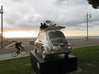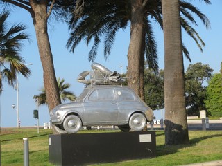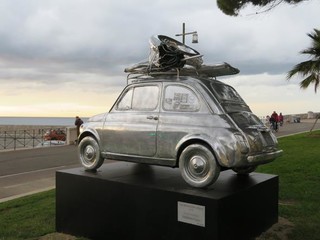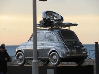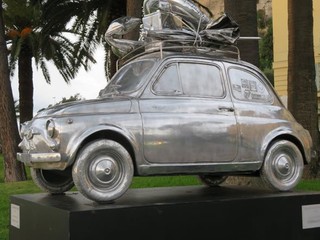 La scultura é anche un inno ad una delle auto che hanno caratterizzato una generazione, i suoi sogni, le sue libertà, il suo anticonformismo: la Fiat 500.