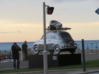 Interamente realizzata con una fusione di alluminio, l'opera di Stéphane Cipre “Un Dimanche à Nice” è stata sistemata in Place Guynemer a Nizza, a due passi dal porto e dal Monument aux Morts di Rauba Capeu.