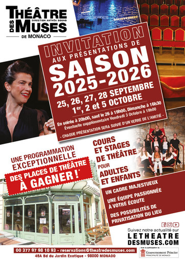 Il Théâtre des Muses invita il pubblico a scoprire la sua nuova stagione teatrale 2025/2026 attraverso una serie di serate speciali, gratuite e aperte a tutti. Un appuntamento ormai tradizionale che unisce la qualità della programmazione all’atmosfera calorosa e accogliente che caratterizza da sempre questo spazio culturale.