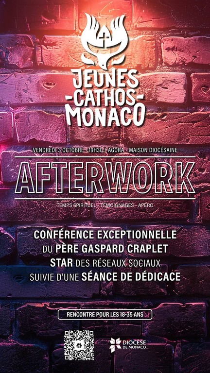 L’Équipe Afterwork è lieta di annunciare la partecipazione straordinaria del Padre Gaspard Craplet a Monaco, venerdì 3 ottobre 2025 alle ore 19:00, presso la Maison diocésaine – Villa Agora. L’incontro è rivolto a studenti e giovani professionisti e promette una serata intensa e coinvolgente, articolata in tre momenti principali.