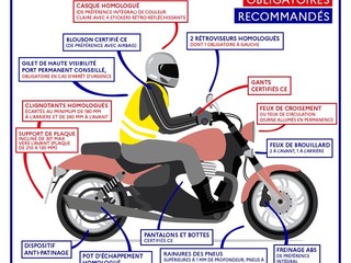 La Prefettura delle Alpi Marittime ha mobilitato le pattuglie lungo le strade più frequentate dalle moto, ma non si è limitata a questo, con una fotografia postata sul proprio sito e sui social ha ricordato quale debba essere l’equipaggiamento obbligatorio per quanti, in sella alle due ruote, percorrono le strade francesi.